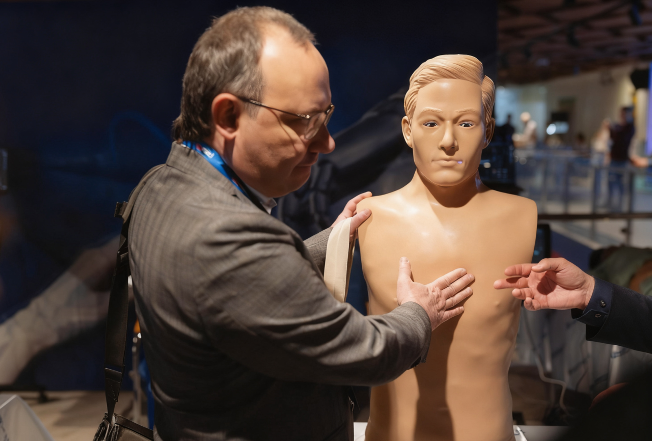 Building on the recognition from professional competitions, our partner capitalized on this momentum by prominently featuring the MULAN-Multifunction Patient Simulator, NUWA-Birthing Simulator, and SP Brothers-Standardized Patient Brothers at the ROSOMED 2025 in Russia. Among them, SP Brothers became a standout attraction, drawing significant attention from a large audience of professional visitors who stopped to experience it firsthand. Its appeal stemmed from its comprehensive functionality, which integrates assessment, self-directed learning, and a wealth of clinical cases. This successful showcase further solidified our position in Russia’s high-end simulation training market.