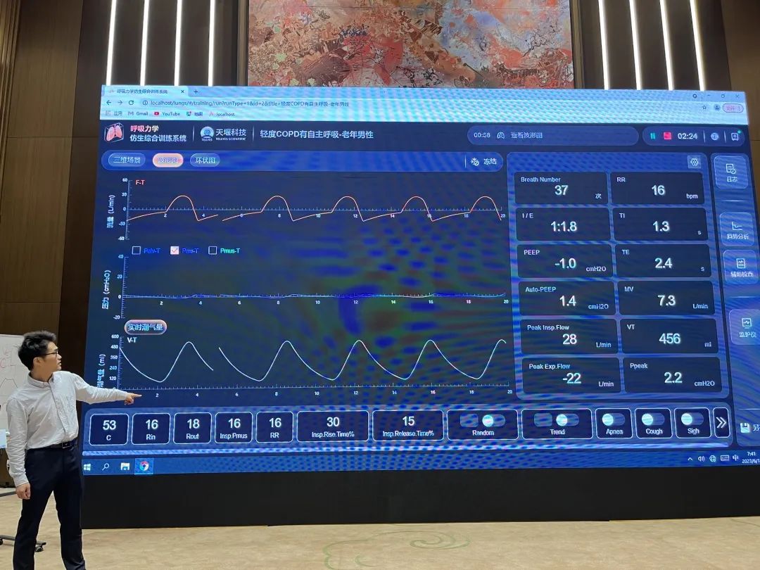 在本次會(huì )議中,來(lái)自天津醫科大學(xué)總醫院的李晨主任在講授主旨為“呼吸機基本操作”的論壇講座時(shí),使用天堰科技的“模擬肺”模擬了“復蘇后自主循環(huán)恢復,無(wú)自主呼吸”、“重癥肌無(wú)力患者,有較多自主呼吸但不穩定”、“肺炎,自主呼吸較強且穩定”、“創(chuàng )傷后呼吸困難3天,確認為ARDS”等多種不同疾病狀態(tài)下患者的呼吸運動(dòng)變化,結合真實(shí)呼吸機操作時(shí)的即時(shí)動(dòng)態(tài)反饋,達到了很好的授課效果并收獲了現場(chǎng)的一致好評。